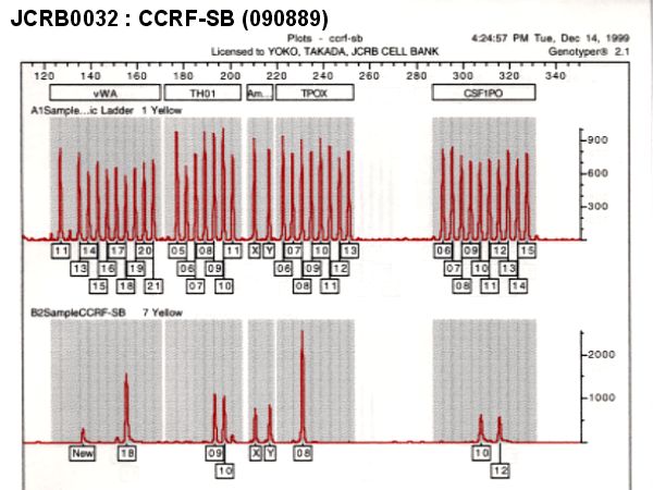 | 表面抗原 | DNA Profile (STR) | D5S818:11,12 D13S317:10,12 D7S820:11,12 D16S539:13 VWA:18 TH01:9,10 AM:X,Y TPOX:8 CSF1PO:10,12 |