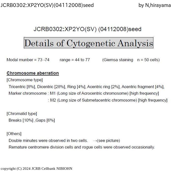 | 細胞番号(JCRB) | JCRB0302 | 細胞名 | XP2YO(SV) |