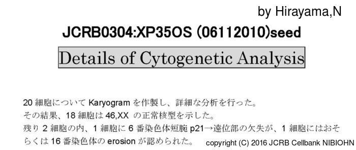 | 細胞番号(JCRB) | JCRB0304 | 細胞名 | XP35OS |