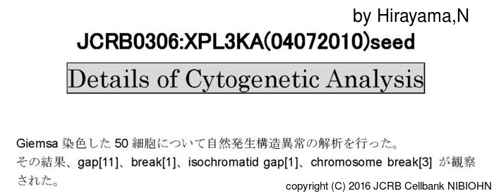 | 細胞番号(JCRB) | JCRB0306 | 細胞名 | XPL3KA |
