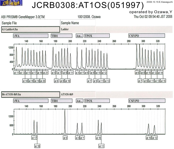| 細胞番号 | JCRB0308 | 細胞名 | AT1OS |