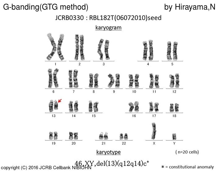 | 細胞番号(JCRB) | JCRB0330 | 細胞名 | RBL182T |