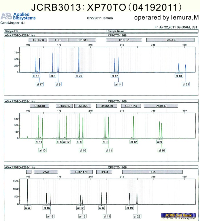 | 細胞番号(JCRB) | JCRB3013 | 細胞名 | XP70TO |