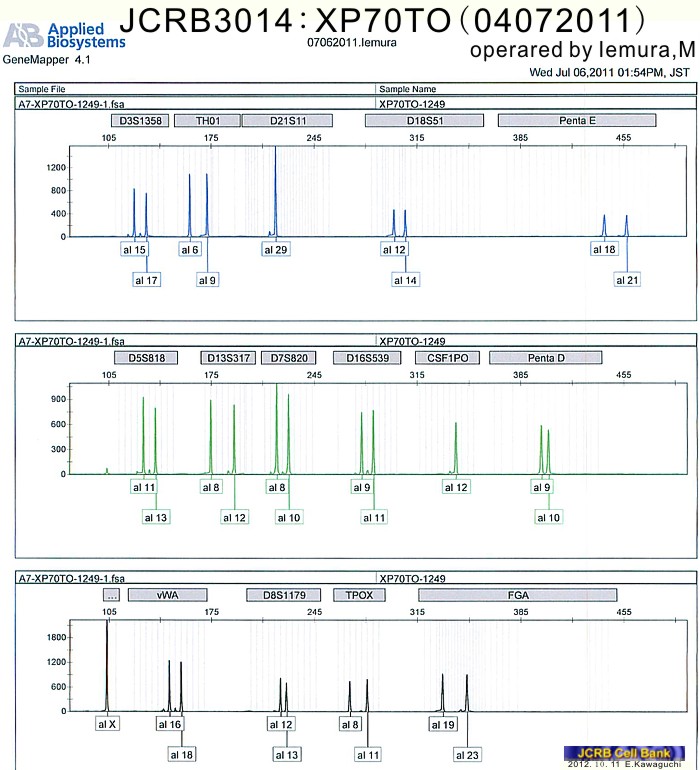 | 細胞番号(JCRB) | JCRB3014 | 細胞名 | XP70TO |