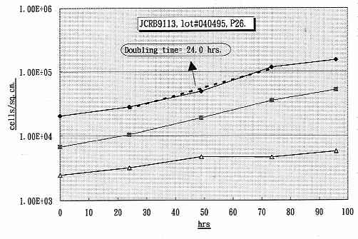 | 増殖速度 | D.T.=ca 32 hrs | 凍結時生細胞濃度 | 5.1 x 10^5 |