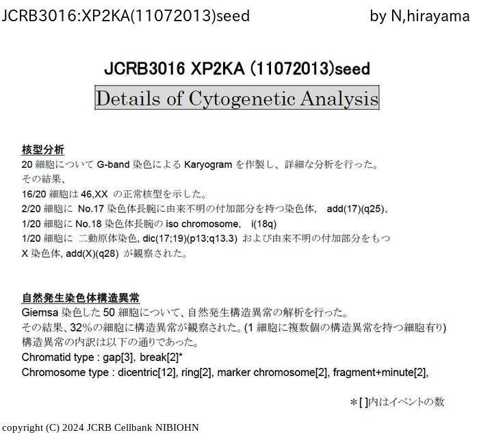 | 細胞番号 | JCRB3016 | 細胞名 | XP2KA |