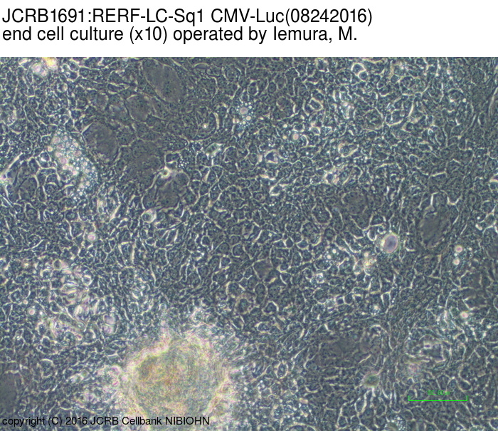 | 細胞番号 | JCRB1691 | 細胞名 | RERF-LC-Sq1 CMV-Luc |