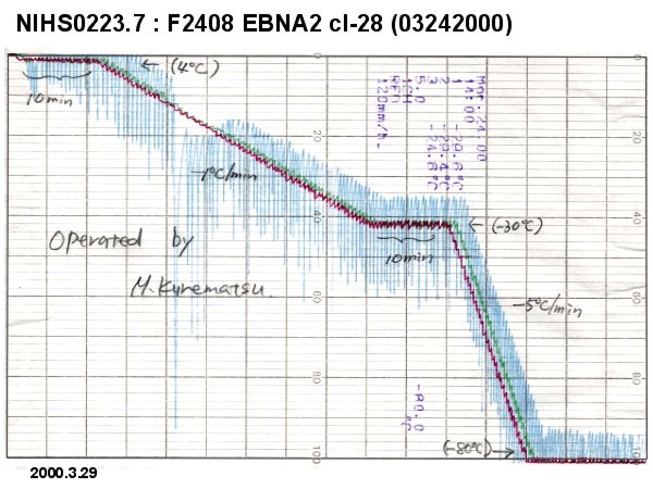 Viability/Growth rate/Cell number are represented as actual values measured at lot presentation in JCRB, but are not guaranteed values. Additionally, the doubling time is a rough value measured during passages.| Cell No. | JCRB0143.7 | Cell Name | F2408 EBNA2 cl-28 |