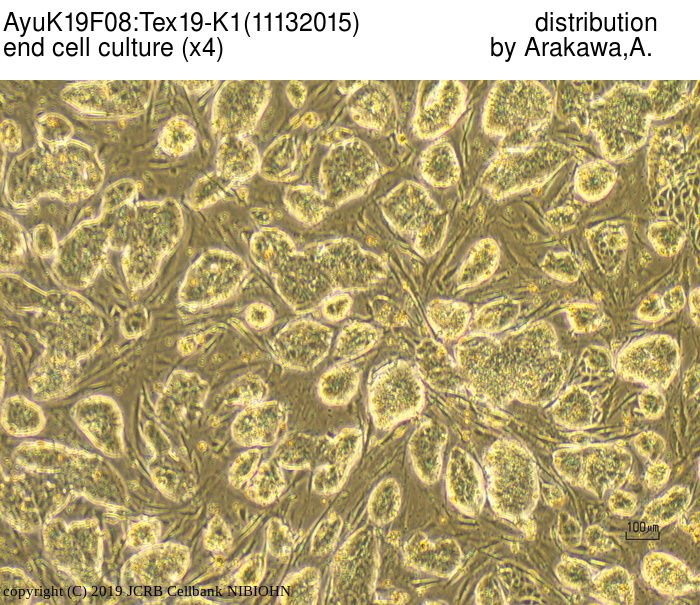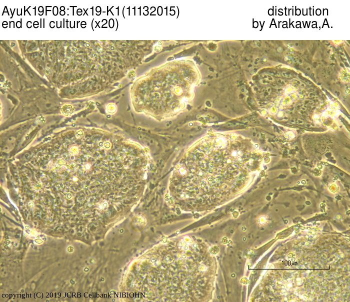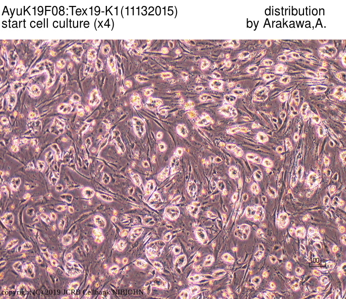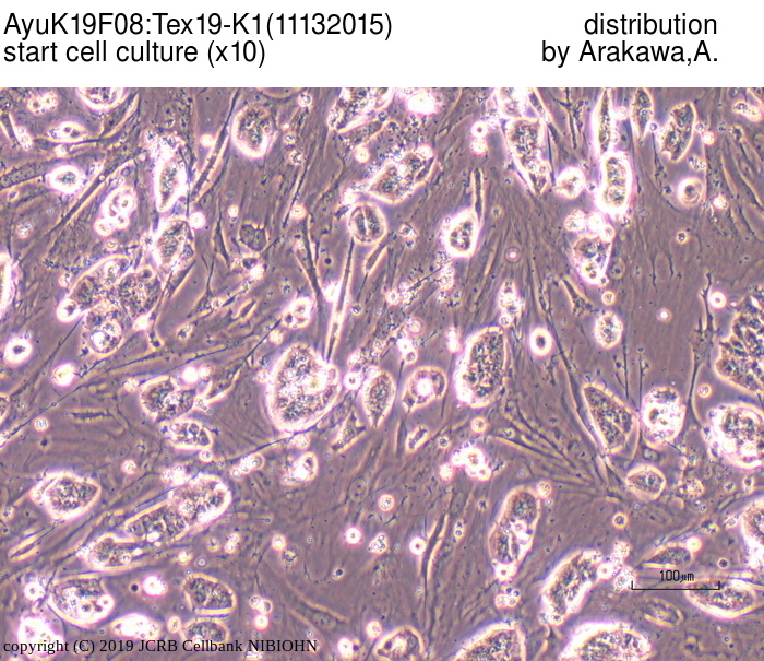Viability/Growth rate/Cell number are represented as actual values measured at lot presentation in JCRB, but are not guaranteed values. Additionally, the doubling time is a rough value measured during passages.